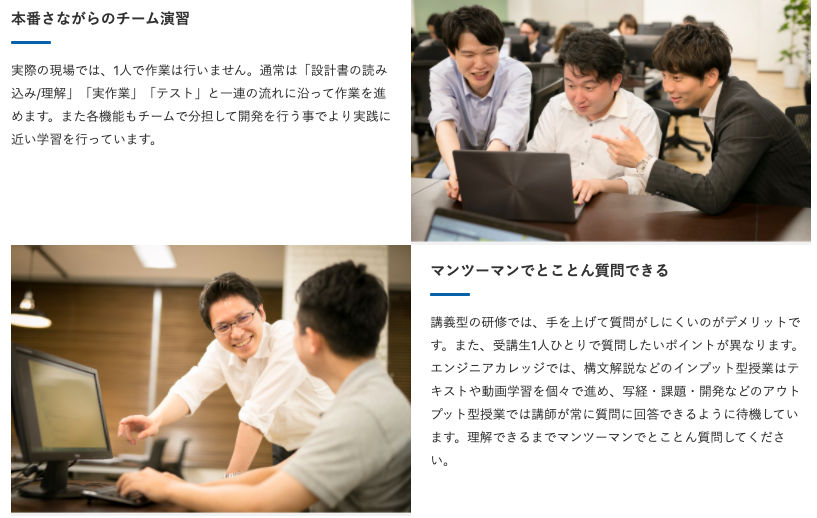 これは駆け出しの頃に自費で受けた私からしたら非常に羨ましい支援です。これだけでもエンジニアカレッジに通う価値がありますね。
